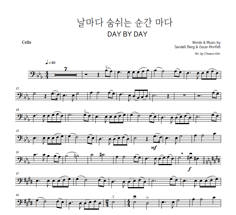남성 멜로디를 '첼로'로 연주하실 수 있으세요.(악보첨부)