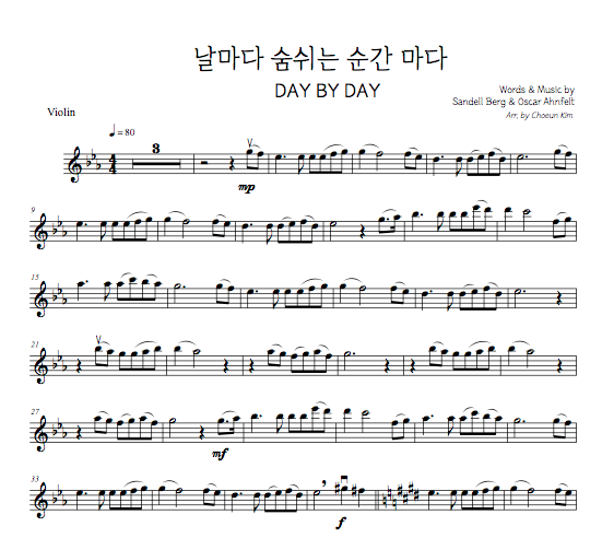 '날마다 숨쉬는 순간마다' 4부합창+바이올린&첼로 악보 바로가기